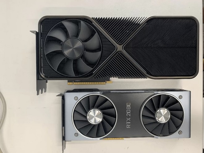 É possível perceber que a Nvidia deve mesmo adotar o design vazado há alguns meses, com um conjunto de haletas de alumínio e coolers extremamente grandes. Podemos esperar assim que a RTX 3090, possível substituta da série Titan, ocupe nada menos que três slots PCI-E, enquanto a RTX 3080 seja levemente menor, tomando dois slots da placa-mãe. Em comparação com a geração anterior, as novas GPUs serão realmente gigantes.
